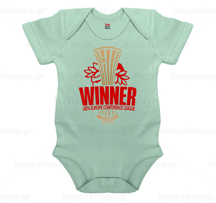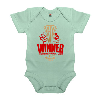 Europa Conference League WINNER, Βρεφικό φορμάκι μωρού, 0-18 μηνών, mint (Μέντα), 100% Organic Cotton, κοντομάνικο