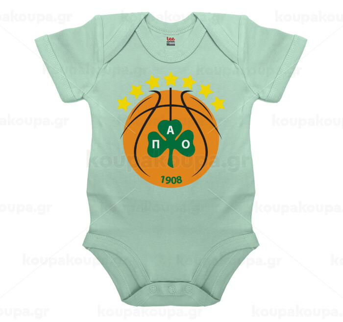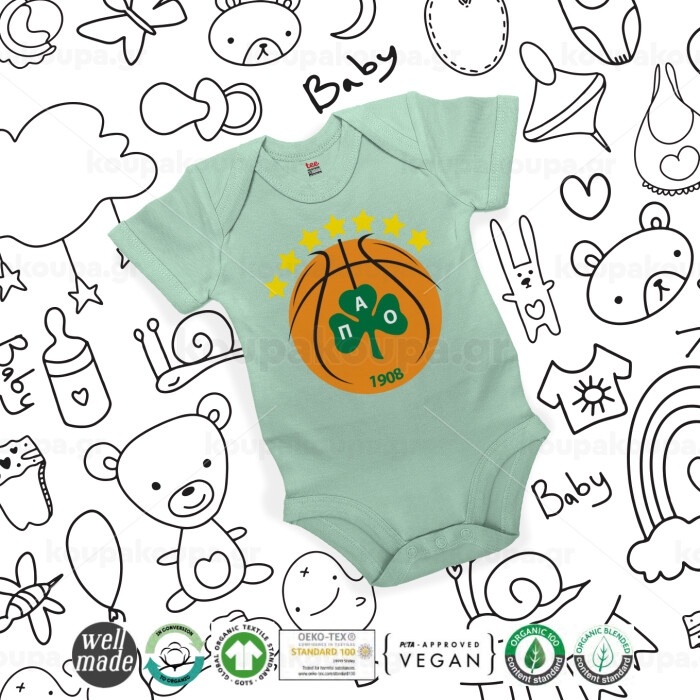 ΠΑΟ BC, Βρεφικό φορμάκι μωρού, 0-18 μηνών, mint (Μέντα), 100% Organic Cotton, κοντομάνικο