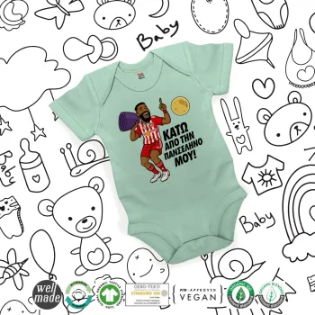 Ροντινέι, "ΚΑΤΩ ΑΠΟ ΤΗΝ ΠΑΝΣΕΛΗΝΟ ΜΟΥ!", Βρεφικό φορμάκι μωρού, 0-18 μηνών, mint (Μέντα), 100% Organic Cotton, κοντομάνικο