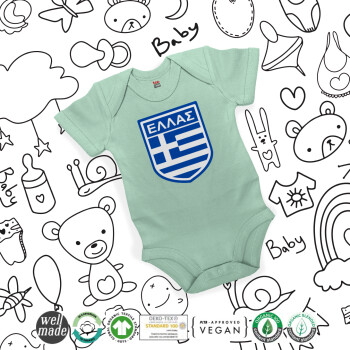 Ελλάς, Βρεφικό φορμάκι μωρού, 0-18 μηνών, mint (Μέντα), 100% Organic Cotton, κοντομάνικο