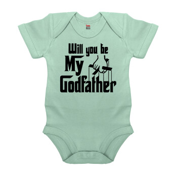 Will You Be My Godfather, Βρεφικό φορμάκι μωρού, 0-18 μηνών, mint (Μέντα), 100% Organic Cotton, κοντομάνικο