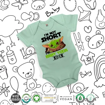I'm not short, i'm Baby Yoda size, Βρεφικό φορμάκι μωρού, 0-18 μηνών, mint (Μέντα), 100% Organic Cotton, κοντομάνικο