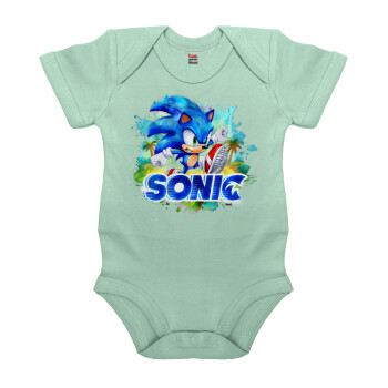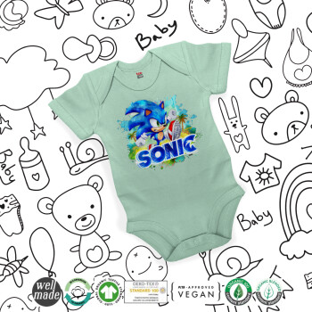Σόνικ ο Σκαντζόχοιρος, Βρεφικό φορμάκι μωρού, 0-18 μηνών, mint (Μέντα), 100% Organic Cotton, κοντομάνικο