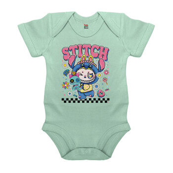 Labubu Stitch, Βρεφικό φορμάκι μωρού, 0-18 μηνών, mint (Μέντα), 100% Organic Cotton, κοντομάνικο