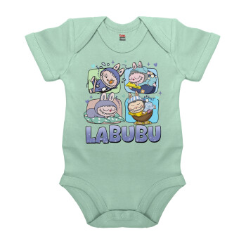 Labubu, Βρεφικό φορμάκι μωρού, 0-18 μηνών, mint (Μέντα), 100% Organic Cotton, κοντομάνικο