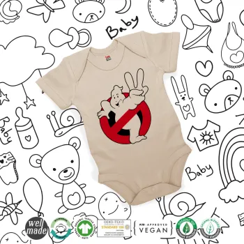 Ghostbusters, Βρεφικό φορμάκι μωρού, 0-18 μηνών, Natural (Εκρού), 100% Organic Cotton, κοντομάνικο