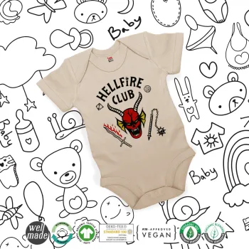Hellfire CLub, Stranger Things, Βρεφικό φορμάκι μωρού, 0-18 μηνών, Natural (Εκρού), 100% Organic Cotton, κοντομάνικο