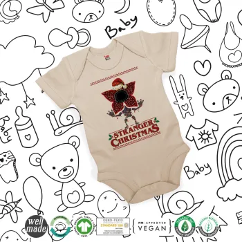 Stranger Things Christmas, Βρεφικό φορμάκι μωρού, 0-18 μηνών, Natural (Εκρού), 100% Organic Cotton, κοντομάνικο