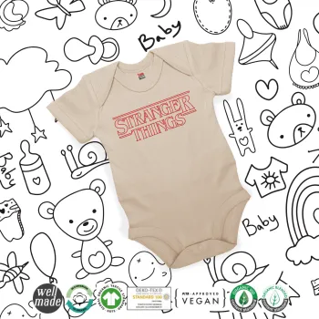 Stranger Things Logo, Βρεφικό φορμάκι μωρού, 0-18 μηνών, Natural (Εκρού), 100% Organic Cotton, κοντομάνικο