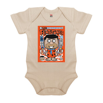 The flintstones, Βρεφικό φορμάκι μωρού, 0-18 μηνών, Natural (Εκρού), 100% Organic Cotton, κοντομάνικο