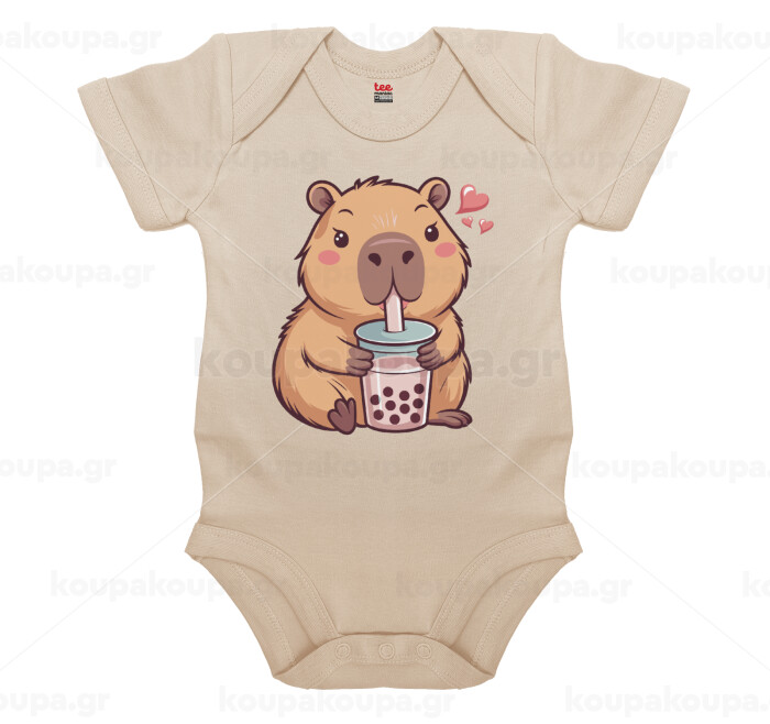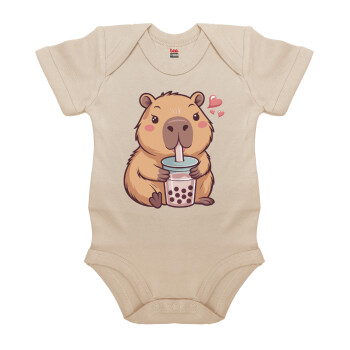 Capybara Bubble Tea, Βρεφικό φορμάκι μωρού, 0-18 μηνών, Natural (Εκρού), 100% Organic Cotton, κοντομάνικο