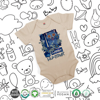 Huntrix Derpy the blue tiger, Βρεφικό φορμάκι μωρού, 0-18 μηνών, Natural (Εκρού), 100% Organic Cotton, κοντομάνικο