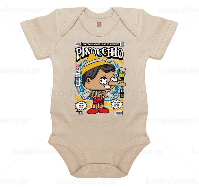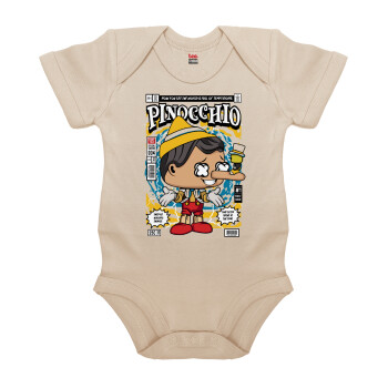 Pinocchio, Βρεφικό φορμάκι μωρού, 0-18 μηνών, Natural (Εκρού), 100% Organic Cotton, κοντομάνικο