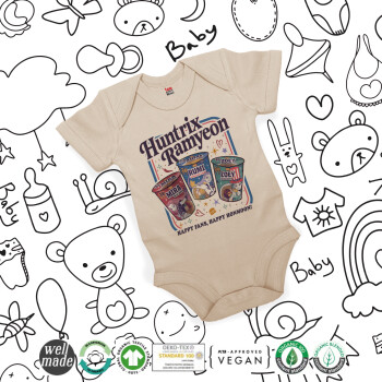 Ramyeon Huntrix, Βρεφικό φορμάκι μωρού, 0-18 μηνών, Natural (Εκρού), 100% Organic Cotton, κοντομάνικο