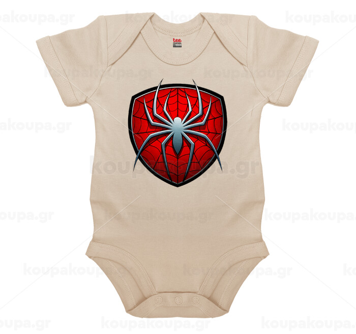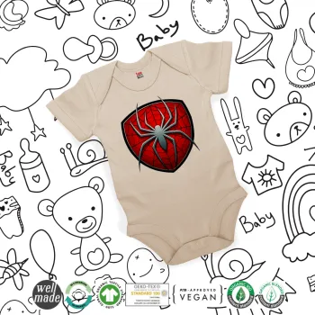Spider-man, Βρεφικό φορμάκι μωρού, 0-18 μηνών, Natural (Εκρού), 100% Organic Cotton, κοντομάνικο