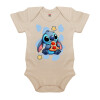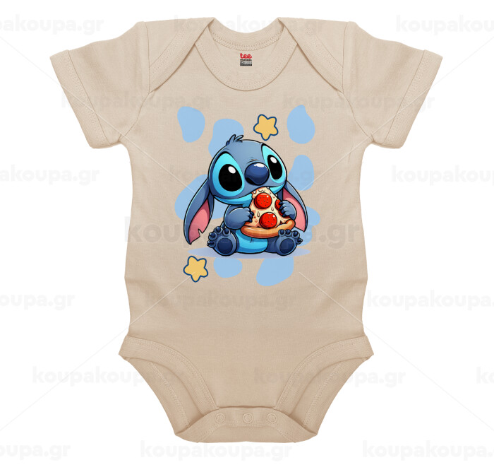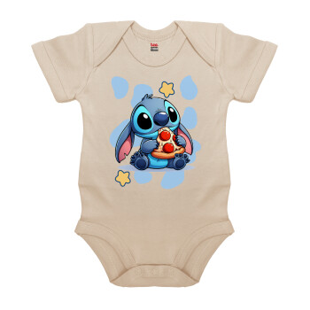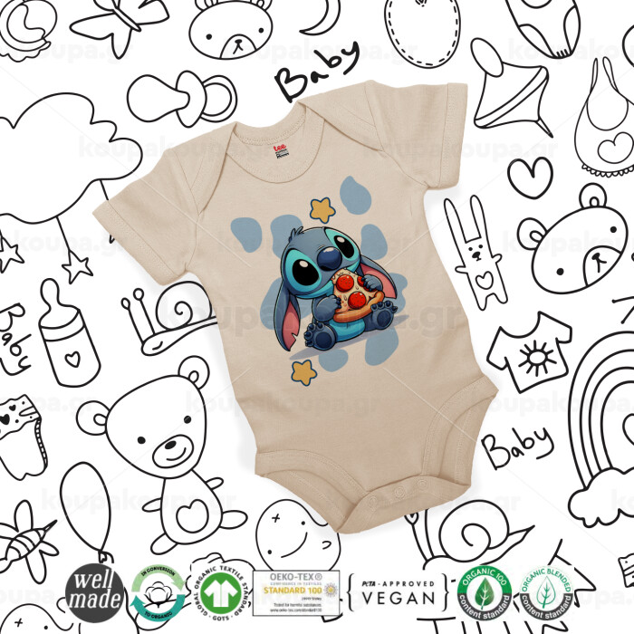 Stitch Pizza, Βρεφικό φορμάκι μωρού, 0-18 μηνών, Natural (Εκρού), 100% Organic Cotton, κοντομάνικο