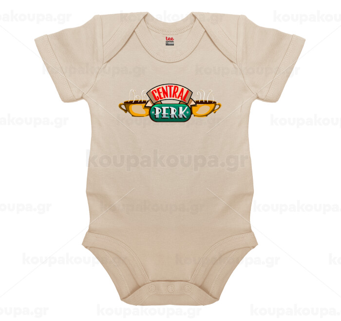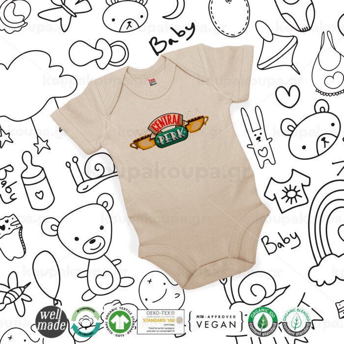 Central perk, Βρεφικό φορμάκι μωρού, 0-18 μηνών, Natural (Εκρού), 100% Organic Cotton, κοντομάνικο