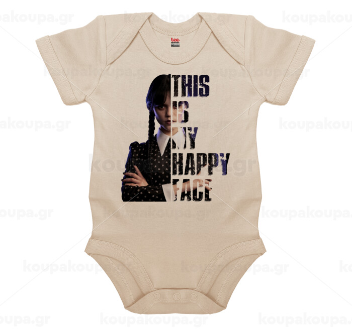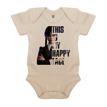 Wednesday, This is my happy face, Βρεφικό φορμάκι μωρού, 0-18 μηνών, Natural (Εκρού), 100% Organic Cotton, κοντομάνικο