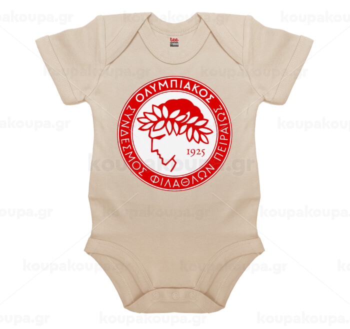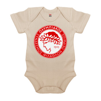 Ολυμπιακός, Βρεφικό φορμάκι μωρού, 0-18 μηνών, Natural (Εκρού), 100% Organic Cotton, κοντομάνικο