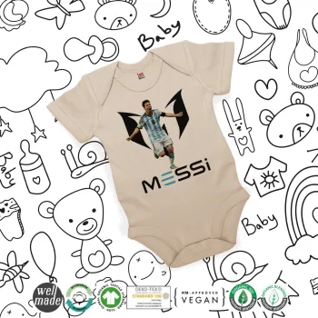 Λιονέλ Μέσι, Leo Messi, Βρεφικό φορμάκι μωρού, 0-18 μηνών, Natural (Εκρού), 100% Organic Cotton, κοντομάνικο