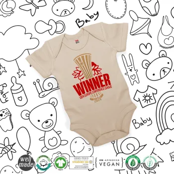 Europa Conference League WINNER, Βρεφικό φορμάκι μωρού, 0-18 μηνών, Natural (Εκρού), 100% Organic Cotton, κοντομάνικο