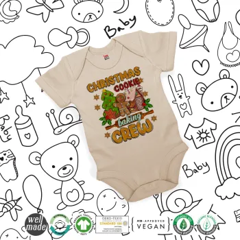 Christmas Cookie Baking Crew, Βρεφικό φορμάκι μωρού, 0-18 μηνών, Natural (Εκρού), 100% Organic Cotton, κοντομάνικο