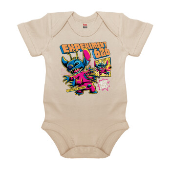 Stitch Experiment 626, Βρεφικό φορμάκι μωρού, 0-18 μηνών, Natural (Εκρού), 100% Organic Cotton, κοντομάνικο