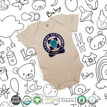 Ελληνική Αστυνομία, Βρεφικό φορμάκι μωρού, 0-18 μηνών, Natural (Εκρού), 100% Organic Cotton, κοντομάνικο