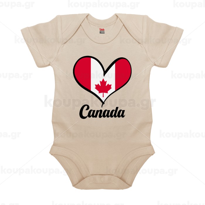 Canada flag, Βρεφικό φορμάκι μωρού, 0-18 μηνών, Natural (Εκρού), 100% Organic Cotton, κοντομάνικο