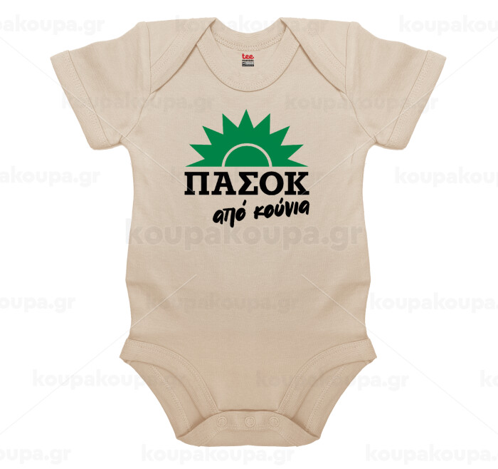 ΠΑΣΟΚ από κούνια, Βρεφικό φορμάκι μωρού, 0-18 μηνών, Natural (Εκρού), 100% Organic Cotton, κοντομάνικο