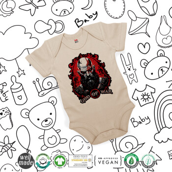 God of war, Βρεφικό φορμάκι μωρού, 0-18 μηνών, Natural (Εκρού), 100% Organic Cotton, κοντομάνικο