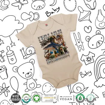Italian Brainrot, Βρεφικό φορμάκι μωρού, 0-18 μηνών, Natural (Εκρού), 100% Organic Cotton, κοντομάνικο