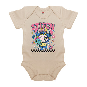 Labubu Stitch, Βρεφικό φορμάκι μωρού, 0-18 μηνών, Natural (Εκρού), 100% Organic Cotton, κοντομάνικο