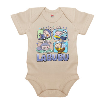 Labubu, Βρεφικό φορμάκι μωρού, 0-18 μηνών, Natural (Εκρού), 100% Organic Cotton, κοντομάνικο