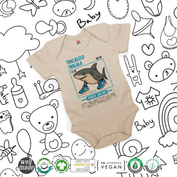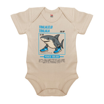 Tralalero Tralala, Βρεφικό φορμάκι μωρού, 0-18 μηνών, Natural (Εκρού), 100% Organic Cotton, κοντομάνικο