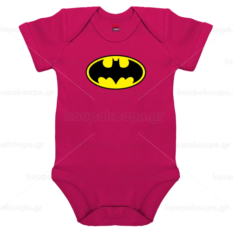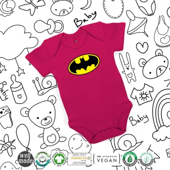 Batman, Βρεφικό φορμάκι μωρού, 0-18 μηνών, ΡΟΖ, 100% Organic Cotton, κοντομάνικο