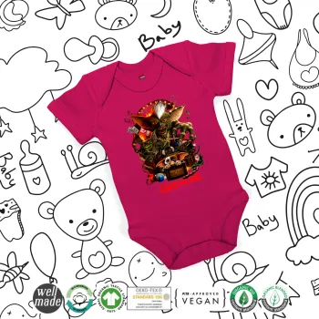Gremlins, Βρεφικό φορμάκι μωρού, 0-18 μηνών, ΡΟΖ, 100% Organic Cotton, κοντομάνικο