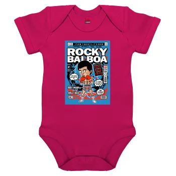 Rocky Balboa, Βρεφικό φορμάκι μωρού, 0-18 μηνών, ΡΟΖ, 100% Organic Cotton, κοντομάνικο