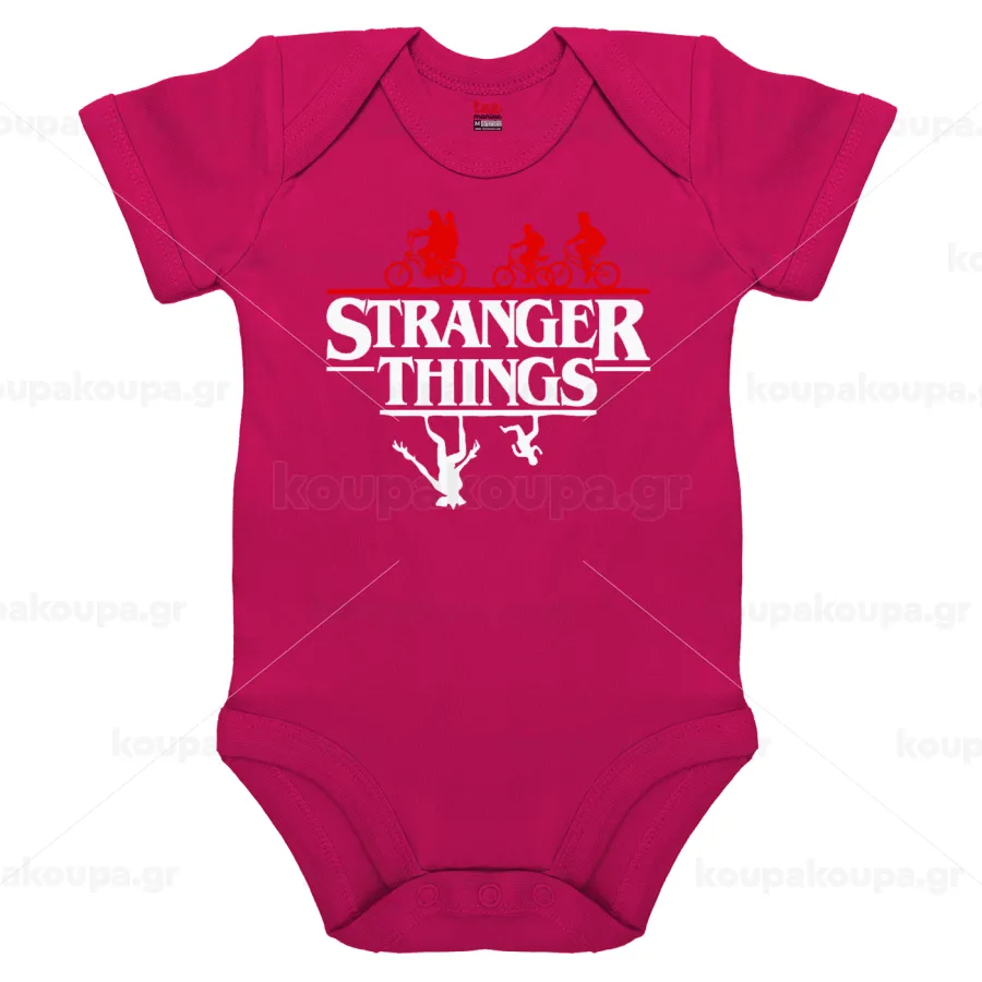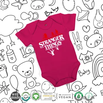 Stranger Things upside down, Βρεφικό φορμάκι μωρού, 0-18 μηνών, ΡΟΖ, 100% Organic Cotton, κοντομάνικο