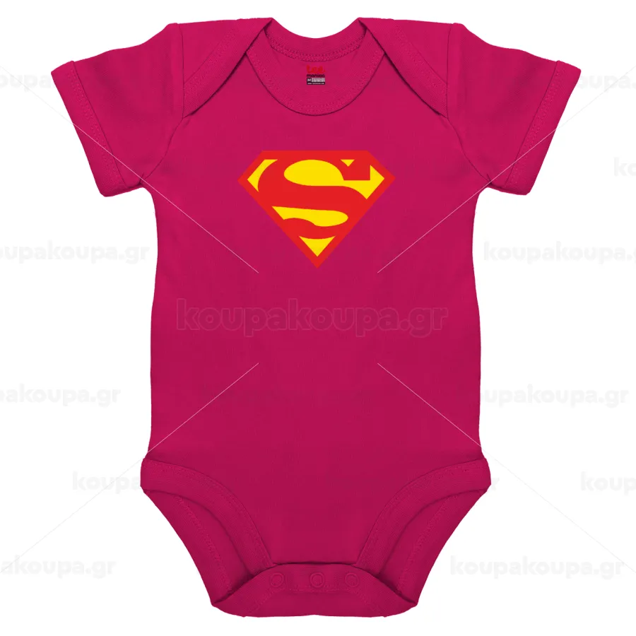 Superman, Βρεφικό φορμάκι μωρού, 0-18 μηνών, ΡΟΖ, 100% Organic Cotton, κοντομάνικο