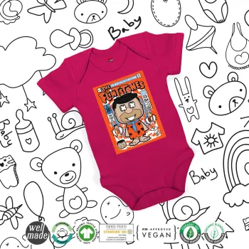 The flintstones, Βρεφικό φορμάκι μωρού, 0-18 μηνών, ΡΟΖ, 100% Organic Cotton, κοντομάνικο