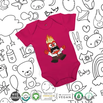 Inside Out θυμός, Βρεφικό φορμάκι μωρού, 0-18 μηνών, ΡΟΖ, 100% Organic Cotton, κοντομάνικο