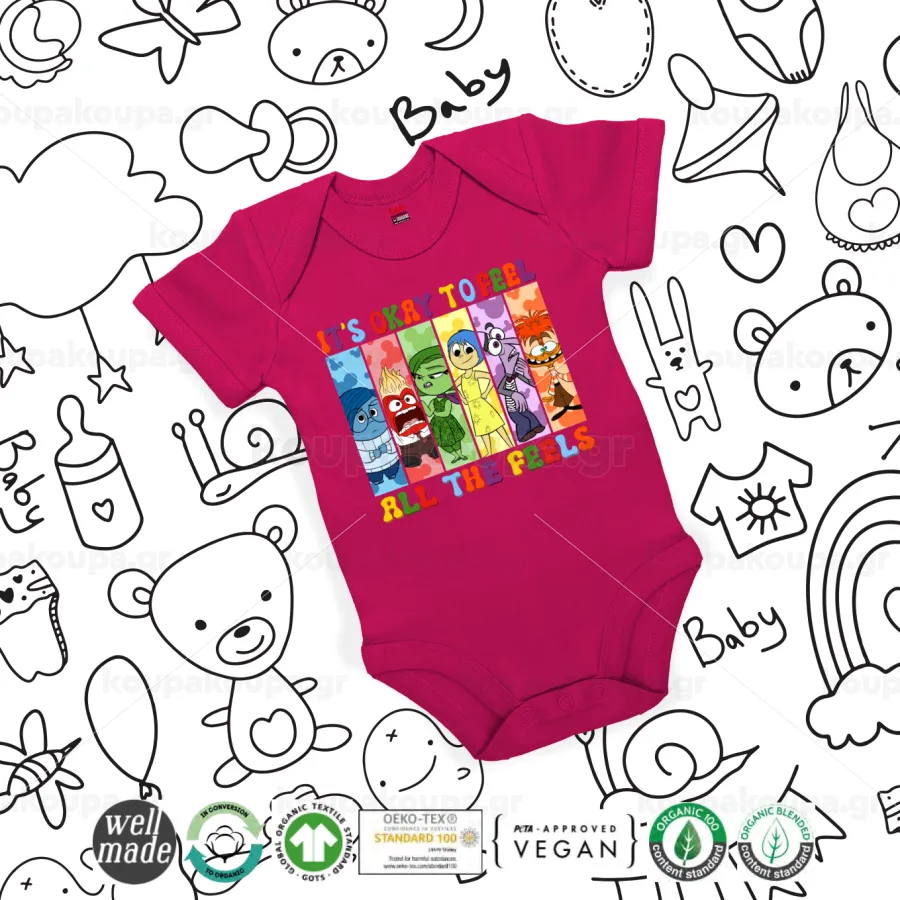 Inside Out It's Okay To Feel All The Feels , Βρεφικό φορμάκι μωρού, 0-18 μηνών, ΡΟΖ, 100% Organic Cotton, κοντομάνικο
