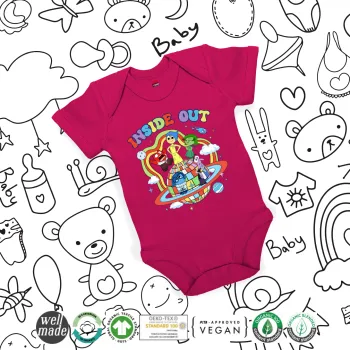 Inside Out, Βρεφικό φορμάκι μωρού, 0-18 μηνών, ΡΟΖ, 100% Organic Cotton, κοντομάνικο