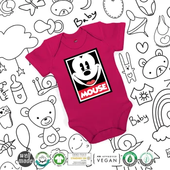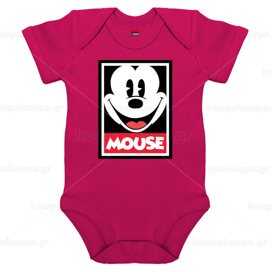 Μίκυ Μάους, Βρεφικό φορμάκι μωρού, 0-18 μηνών, ΡΟΖ, 100% Organic Cotton, κοντομάνικο