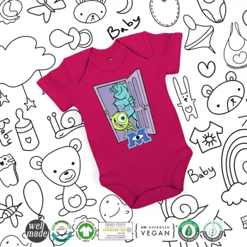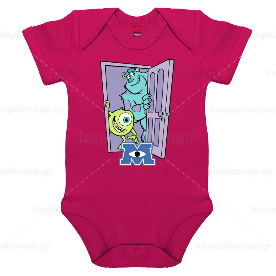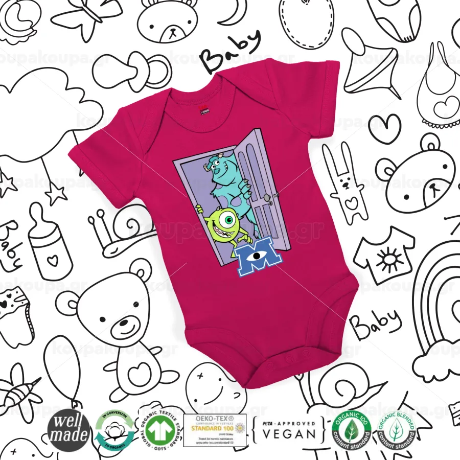 Monster inc, Βρεφικό φορμάκι μωρού, 0-18 μηνών, ΡΟΖ, 100% Organic Cotton, κοντομάνικο