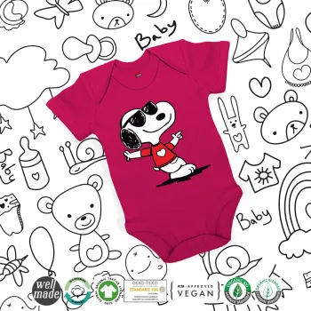 Snoopy καρδούλα, Βρεφικό φορμάκι μωρού, 0-18 μηνών, ΡΟΖ, 100% Organic Cotton, κοντομάνικο