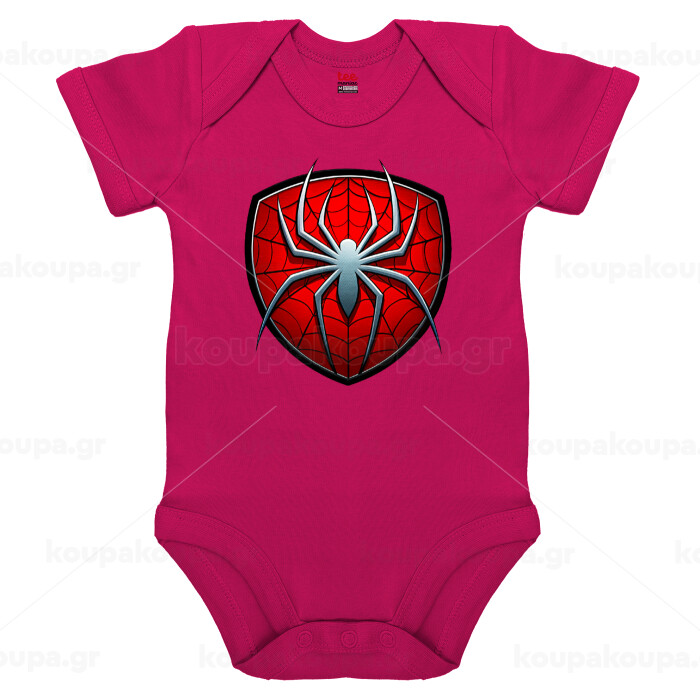 Spider-man, Βρεφικό φορμάκι μωρού, 0-18 μηνών, ΡΟΖ, 100% Organic Cotton, κοντομάνικο