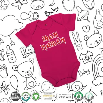 Iron maiden, Βρεφικό φορμάκι μωρού, 0-18 μηνών, ΡΟΖ, 100% Organic Cotton, κοντομάνικο