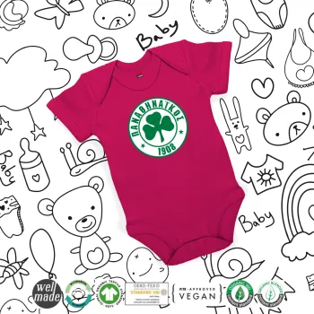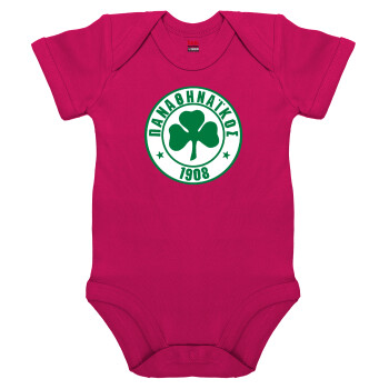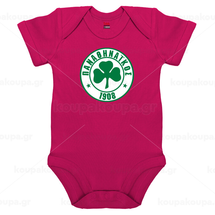 ΠΑΟ Παναθηναϊκός, Βρεφικό φορμάκι μωρού, 0-18 μηνών, ΡΟΖ, 100% Organic Cotton, κοντομάνικο